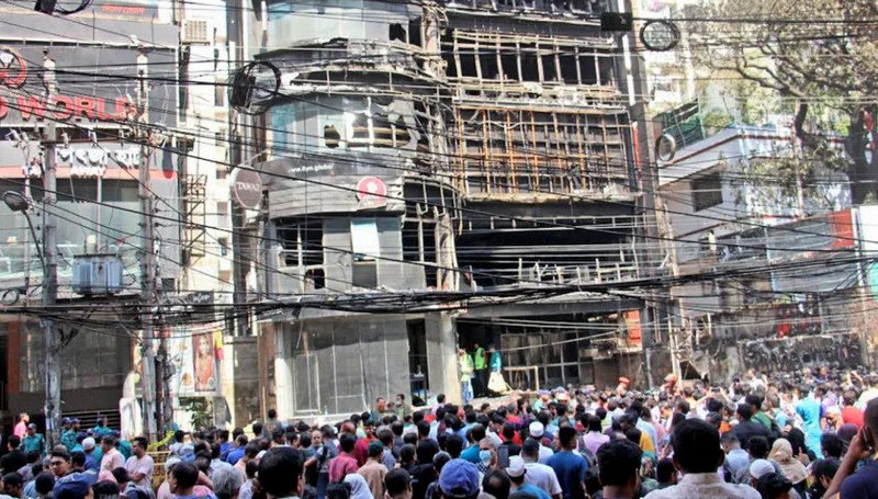 র্যাবের মহাপরিচালক বলেন, সাততলা ভবনে ওঠার জন্য একটা মাত্র সিঁড়ি ছিল। দুটি লিফট ছিল। আগুন লাগার সঙ্গে সঙ্গে বিদ্যুৎ চলে যাওয়ায় লিফট বন্ধ হয়ে যায়। (প্রত্যক্ষদর্শীদের সঙ্গে) কথা বলে যেটা বুঝতে পেরেছি, যখন মানুষ নিচে নামতে গেছে, তখন ভেবেছে নিচে আগুন লেগেছে, যখন ওপরে আছে তখন ভেবেছে, ওপরে আগুন লেগেছে। এ ধরনের ঘটনা ঘটেছে।