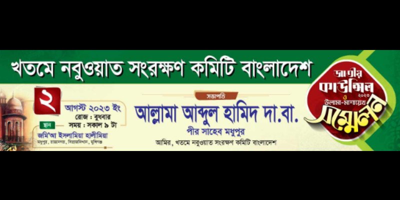 খতমে নবুওয়াত সংরক্ষণ কমিটি বাংলাদেশের উদ্যোগে জাতীয় কাউন্সিল ও উলামা মাশায়েখ সম্মেলন অনুষ্ঠিত হবে।