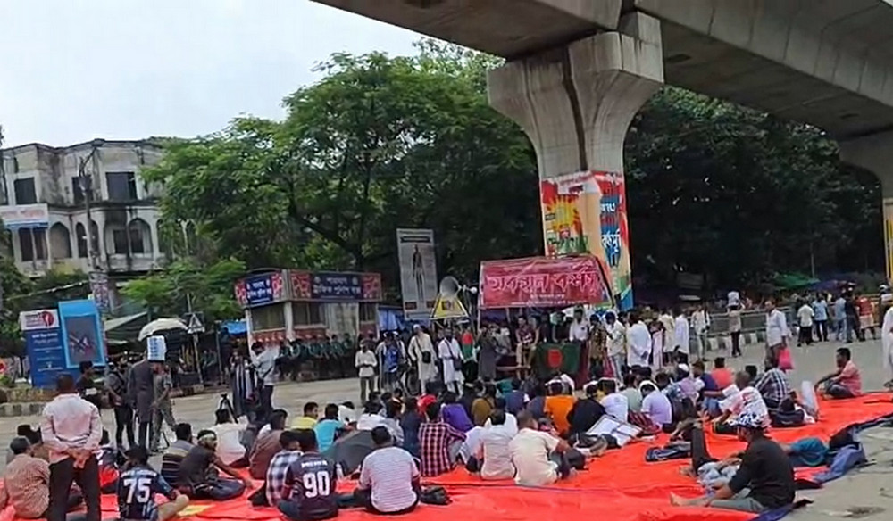 রাত পেরিয়ে শুক্রবার (১ আগস্ট) সকালেও সড়কের মাঝে ত্রিপল বিছিয়ে অবস্থান করছেন তারা। আর অস্থায়ী মঞ্চে দাঁড়িয়ে বক্তব্য দিচ্ছেন তারা।