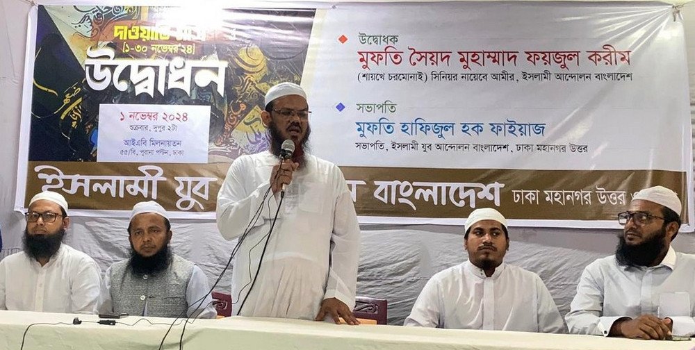 ইসলামী আন্দোলন বাংলাদেশের সিনিয়র নায়েবে আমীর মুফতী ফয়জুল করীম বলেছেন, দেশের যুব সমাজের নৈতিক অধঃপতন ঠেকাতে এবং সত্যিকার ইসলামী সমাজ প্রতিষ্ঠায় যুবসমাজকে ইসলামী আন্দোলনে সম্পৃক্ত করা অত্যন্ত জরুরি। যুব সমাজের মাধ্যমে দেশের পরিবর্তন সম্ভব। আমাদের লক্ষ্য ও উদ্দেশ্য হলো ইসলামী সমাজ প্রতিষ্ঠা করা। যুব সমাজ জাগলে দেশ জাগবে। এ জন্য তাদেরকে ইসলামের আলোয় আলোকিত করে গড়ে তুলতে হবে। যুব সমাজের মাধ্যমে দেশে ইসলামী কল্যাণ রাষ্ট্র প্রতিষ্ঠার মাধ্যমে ইসলামের সৌন্দর্য দেশবাসির সামনে তুলে ধরতে হবে।