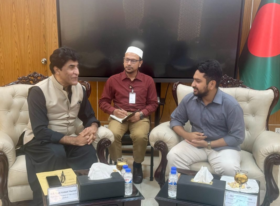 উপদেষ্টা মো. নাহিদ ইসলামের সাথে রোববার সচিবালয়ে তার দফতরে ঢাকায় নিযুক্ত পাকিস্তানের হাইকমিশনার সৈয়দ আহমদ মারুফ সাক্ষাৎ করতে গেলে তিনি এসব কথা বলেন।