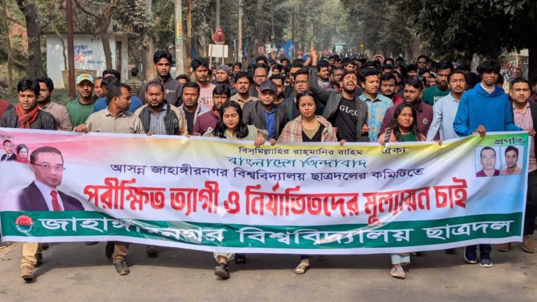 জাহাঙ্গীরনগর বিশ্ববিদ্যালয় (জাবি) শাখা ছাত্রদলের কমিটিতে ত্যাগী ও নির্যাতিতদের যথাযথ মূল্যায়ন চেয়ে বিক্ষোভ মিছিল করেছেন কর্মীরা।