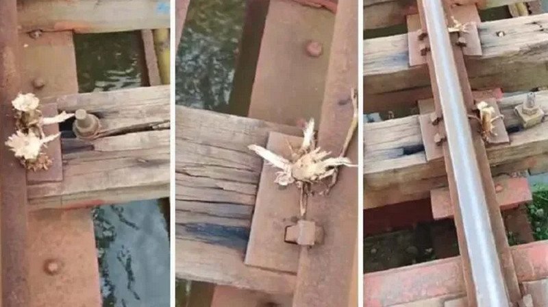 রেলসেতুতে ব্যবহার করা হয়েছে বাঁশের কঞ্চি। এ ঘটনা রীতিমতো ফেসবুকে ভাইরাল হয়েছে। হ’তা’শা প্রকাশ করেছে অনেকেই।