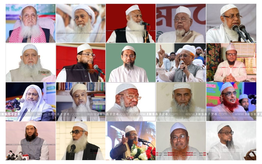 আহ্বানে, আল্লামা শাহ্ মহিবুল্লাহ বাবুনগরী, আল্লামা খলিল আহমাদ কাসেমী, মধুপু পীর আল্লামা আব্দুল হামিদ, মাওলানা আব্দুল রহমান হাফেজ্জী, মাওলানা নুরুল ইসলাম, মাওলানা ওবায়দুল্লাহ ফারুক, মাওলানা রশিদুর রহমান, আল্লামা শাইখ জিয়াউদ্দিন, আল্লামা শায়েখ সাজিদুর রহমান, মাওলানা আব্দুল কুদ্দুস, মাওলানা নূরুল ইসলাম ওলিপুরী, মাওলানা মাহফুজুল হক, মাওলানা আবু তাহের নদভী. মাওলানা আরশাদ রহমানি, মাওলানা সালাহউদ্দীন নানুপুরী, মাওলানা মুস্তাক আহমদ, অধ্যক্ষ মিজানুর রহমান চৌধুরীদেওনা পীর, মাওলানা আনোয়ারুল করীম, মাওলানা মুফতি মোহাম্মদ আলী, মাওলানা মুফতি মনসুরুল হক, মাওলানা মুফতি দেলাওয়ার হোসাইন, মাওলানা জাফর আহমাদ, মাওলানা জুনায়েদ আল হাবিব, মাওলানা মঞ্জুরুল ইসলাম আফেন্দি, মাওলানা বাহাউদ্দীন জাকারিয়া, মাওলানা আব্দুল আউয়াল, মাওলানা মুহিউদ্দিন রাব্বানী, মাওলানা নাজমুল হাসান কাসেমী, মাওলানা খালেদ সাইফুল্লাহ সা’দী, মাওলানা মামুনুল হক , মাওলানা জিয়াউদ্দিন, নেত্রকোনা, মাওলানা আব্দুল হক, মাওলানা ইউনুস, মাওলানা নুরুল হক, মাওলানা ওবায়দুর রহমান মাহবুব, মাওলানা আব্দুল হালিম, মাওলানা আনাস, মাওলানা হেলাল উদ্দিন, মাওলানা শওকত হোসাইন সরকার, মাওলানা নেয়ামত উল্লাহ আল ফরিদী, মাওলানা ইসমাইল নূরপুরী।
