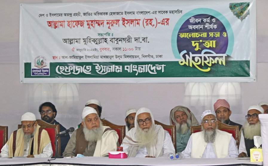 হেফাজতে ইসলাম বাংলাদেশের মহাসচিব আল্লামা নুরুল ইসলাম রহ, এর জীবন ও কর্ম শীর্ষক আলোচনা সভা ও দু’আ মাহফিল অনুষ্ঠিত হয়েছে।