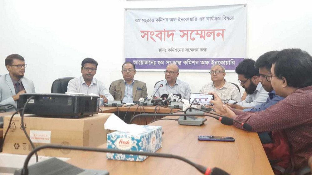 গুম সংক্রান্ত কমিশন অব ইনকোয়ারির সভাপতি বিচারপতি মইনুল ইসলাম চৌধুরী বলেছেন, গুম সংক্রান্ত কমিশনে অভিযোগ জমা দেওয়ার সময় শেষ হয়েছে গত ৩১ অক্টোবর। এই সময়ের মধ্যে এক হাজার ছয়শত (১৬০০)-র বেশি অভিযোগ জমা পড়েছে। ১৪০ জনের সাক্ষাৎকার নেওয়া হয়েছে। এর মধ্যে ৪০০ অভিযোগ খতিয়ে দেখা হয়েছে।