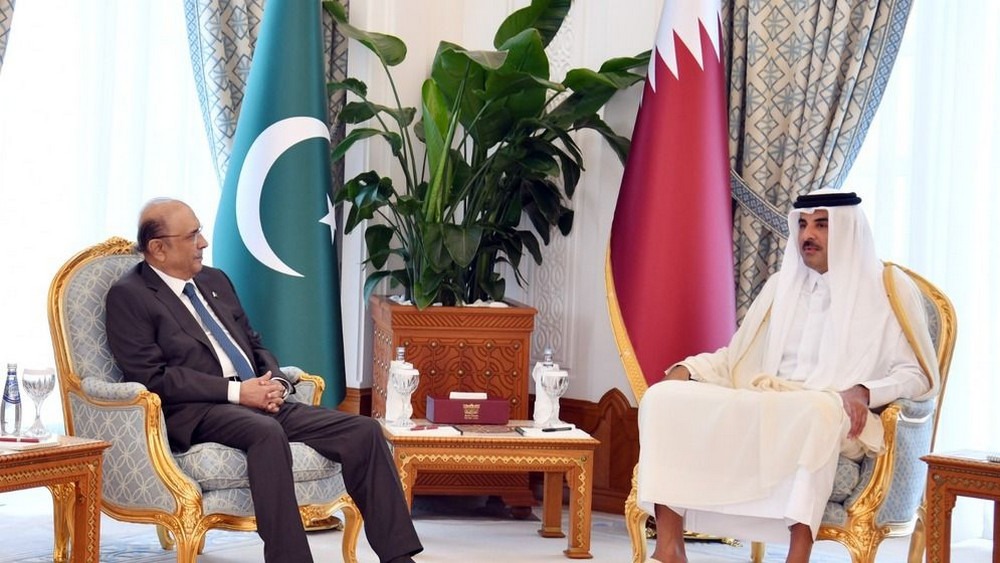 প্রেসিডেন্ট জারদারি কাতারের অগ্রগতি ও আমীরের দূরদর্শী নেতৃত্বের প্রশংসা করেন এবং পাকিস্তান সরকারের পক্ষ থেকে উষ্ণ শুভেচ্ছা জানান। দুই নেতা ভ্রাতৃত্বপূর্ণ সম্পর্ক, আস্থা ও মুসলিম উম্মাহর শান্তি ও উন্নতির যৌথ আকাঙ্ক্ষার ভিত্তিতে গড়ে ওঠা ঐতিহাসিক বন্ধন পুনর্ব্যক্ত করেন।