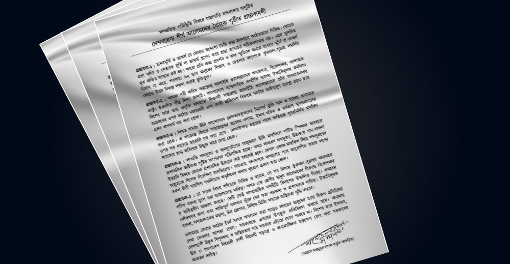 বৈঠকে শীর্ষ আলেমদের পক্ষ থেকে প্রস্তাবণা গৃহিত হয়েছে। প্রস্তাবনা সমূহ হলো-