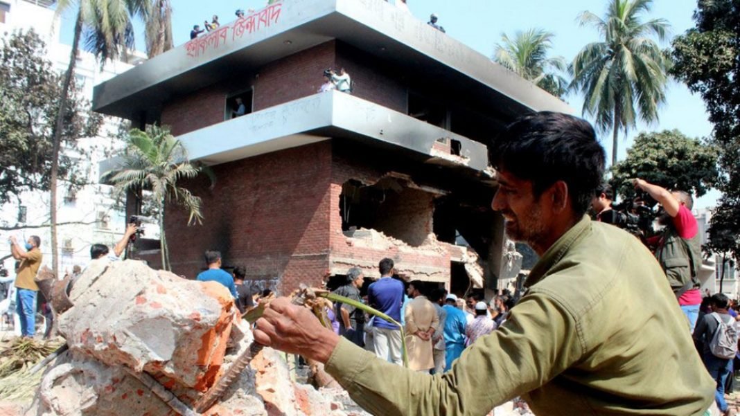 ছাত্র-জনতার তুমুল আন্দোলনের মুখে সাবেক প্রধানমন্ত্রী হাসিনা দেশ থেকে পালিয়ে ভারতে আশ্রয় নেওয়ার পরেই মুজিবের ধানমন্ডি ৩২ নাম্বার বাড়িতে আগুন দিয়ে পুরিয়ে দেওয়া হয়। এবার সে পোড়া বাড়িকেই বুল্ডোজার দিয়ে ভেঙ্গে তার ইট খুলে নিয়ে যাচ্ছে মানুষরা।