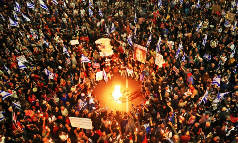 গাজ্জায় হামাসের সঙ্গে ইহুদিবাদী সন্ত্রাসীদের অবৈধ রাষ্ট্র ইসরাইলের যুদ্ধের ছয় মাসের মাথায় প্রধানমন্ত্রী বেনিয়ামিন নেতানিয়াহুর বিরুদ্ধে গতকাল শনিবার (৬ এপ্রিল) হাজার হাজার ইসরাইলী নাগরিক প্রতিবাদ বিক্ষোভে অংশ নিয়েছে।