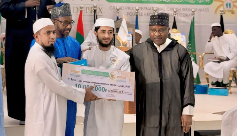 সেনেগালের রাজধানী ডাকারে অনুষ্ঠিত ১১ তম “আন্তর্জাতিক কুরআন প্রতিযোগিতা-২০২৪” এর আসরে ১ম স্থান অর্জন করেছে বাংলাদেশের প্রতিযোগী হাফেজ আবু রায়হান। বিশ্বের ২৮টি দেশের প্রতিযোগী এতে অংশগ্রহণ করেছিল।