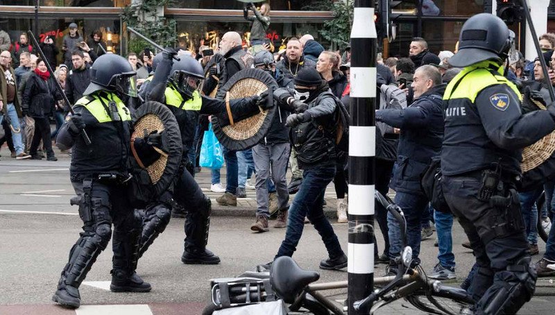 মঙ্গলবার (৮ মে) বিশৃঙ্খলা সৃষ্টির অভিযোগে ১৬৯ জন বিক্ষোভকারীকে আটকের পাশাপাশি নিজেদের সহজাত ভূমিকার বাইরে গিয়ে ব্যাপক কঠোরতা প্রদর্শন করেছে আমস্টারডাম পুলিশ।