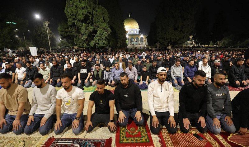 ফিলিস্তিনের আল ওয়াফা নিউজ এজেন্সি জানিয়েছে, ১৬ তম রমজানে ইশা ও তারাবিহর নামাজে প্রায় ১ লাখ ৪০ হাজার ফিলিস্তিনি আল আকসায় সমাবেত হন। এ সময় মসজিদের গেট ও পুরাতন শহর জুড়ে হাজার হাজার ইসরাইলী বাহিনী নিযুক্ত ছিল।