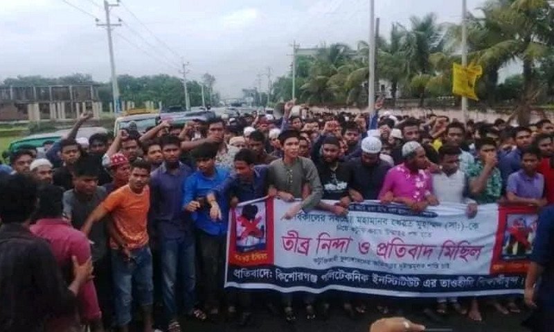 মহানবী সাল্লাল্লাহু আলাইহি ওয়া সাল্লাম ও উম্মুল মুমিনীন হজরত আয়েশা (রা.)-কে নিয়ে বিজেপি নেতাদের কটূক্তির প্রতিবাদে বিক্ষোভ মিছিল করেছে কিশোরগঞ্জ পলিটেকনিট ইনস্টিটিউট।
