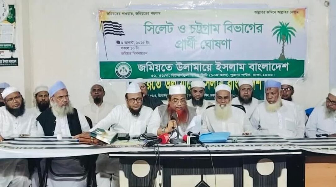 চট্টগ্রাম ও সিলেট বিভাগের ৪৩ আসনে আনুষ্ঠানিকভাবে প্রার্থীর নাম ঘোষণা করেছে জমিয়তে উলামায়ে ইসলাম বাংলাদেশ।