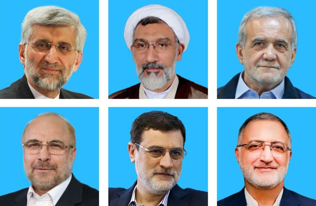 ইরানের ১৪তম প্রেসিডেন্ট নির্বাচনে প্রতিদ্বন্দ্বিতার জন্য চূড়ান্তভাবে ছয় প্রার্থীর নাম ঘোষণা করা হয়েছে। প্রার্থীরা হলেন- মাসুদ পেজেশকিয়ান, মোস্তফা পুরমোহাম্মাদী, সাঈদ জালিলি, আলী রেজা যাকানি, আমির হোসেন কাজীজাদেহ হাশেমি ও মোহাম্মদ বাকের কলিবফ।