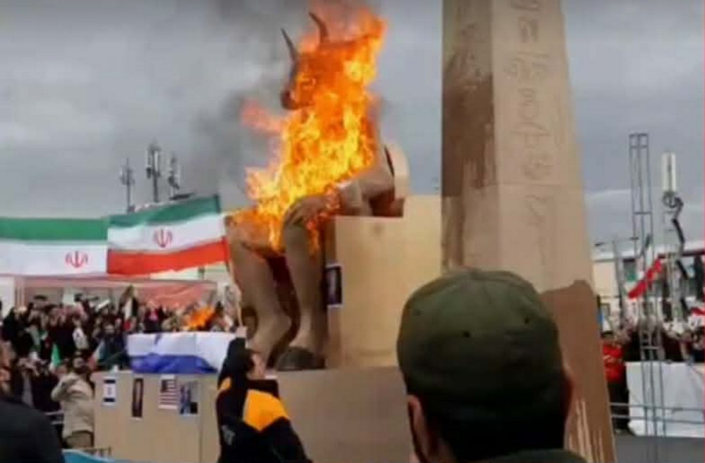 ইরানে শয়তানী ঐশ্বর্য ও প্রাচুর্যের প্রতীক বা’ল মুর্তি পুড়িয়ে ইসরাইল বিরোধী প্রতিবাদের একটি ভিডিও ভাইরাল হয়েছে।