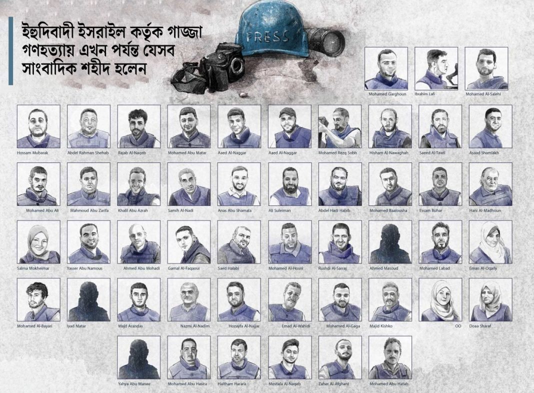 আমেরিকা ও পশ্চিমাদের প্রত্যক্ষ সহায়তায় গাজ্জায় গণহত্যা ও বর্বরতা চালিয়ে যাওয়া ইসরাইলের হাতে নির্মমভাবে যে ৪৯জন ফিলিস্তিনি সাংবাদিক শাহাদাত বরণ করেছেন তারা হলেন –