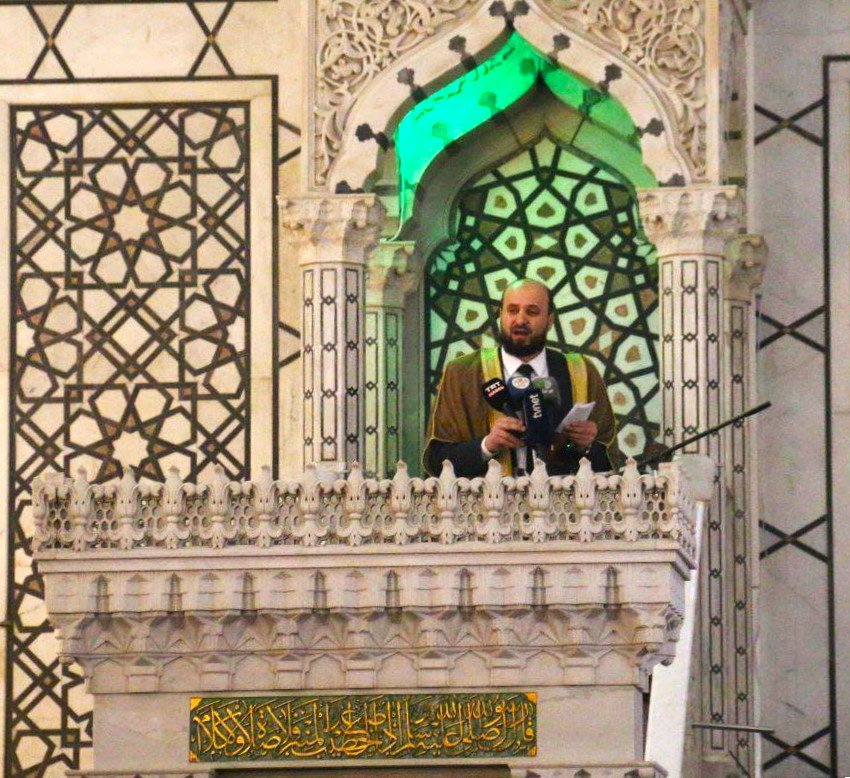 উমাইয়া গ্র্যান্ড মসজিদে নতুন যুগের সিরিয়ার প্রথম জুমু’আ ও প্রথম প্রধানমন্ত্রীর খুতবা বা ভাষণকে কেন্দ্র করে সকাল থেকেই দেশের বিভিন্ন প্রান্ত থেকে হাজার হাজার লোকজনের আগমন ঘটতে থাকে। এসময় লোকজনকে “তাকবীর তাকবীর, আল্লাহু আকবার” ও “নাহনু শা’বুস সুরিয়া, নাহনু শা’বুল ওয়াহেদ” সহ বিভিন্ন ধরণের স্লোগান দিতে দিতে মসজিদের উদ্দেশ্যে এগিয়ে যেতে দেখা যায়।