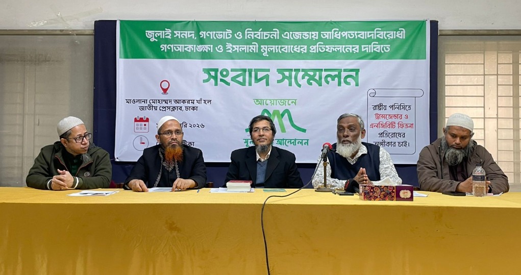 জাতীয় প্রেস ক্লাবে জুলাই সনদ, গণভোট ও নির্বাচনী এজেন্ডায় আধিপত্যবাদবিরোধী গণআকাঙ্ক্ষা এবং ইসলামী মূল্যবোধ প্রতিফলনের দাবিতে সংবাদ সম্মেলন করেছে মূল্যবোধ আন্দোলন। সংগঠনটি বলেছে, পরিভাষার মারপ্যাঁচে এবং নীতিগত উদ্যোগের আড়ালে দেশে এলজিবিটি, সমকামিতা ও ট্রান্সজেন্ডারবাদের নামে পাশ্চাত্যের সাংস্কৃতিক আগ্রাসনকে প্রাতিষ্ঠানিক রূপ দেওয়ার অপচেষ্টা চলছে। তাদের মতে, এ প্রবণতা কেবল সামাজিক ও নৈতিক কাঠামোকেই নয়, জাতির ধর্মীয় চেতনা এবং রাষ্ট্রের মৌলিক মূল্যবোধকেও গভীরভাবে প্রশ্নবিদ্ধ করছে। তাই রাষ্ট্রীয় নীতিনির্ধারণী পর্যায়ে এলজিবিটি এজেন্ডা প্রতিরোধ, জনআকাঙ্ক্ষা অনুযায়ী জুলাই সনদের সংশোধন এবং গণভোটের কাঠামো সংস্কারের দাবি জানায় সংগঠনটি।