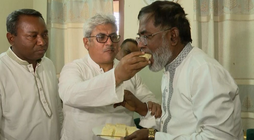 ফুল-মিষ্টি নিয়ে জামায়াত প্রার্থীর বাড়িতে বিএনপির বিজয়ী প্রার্থী