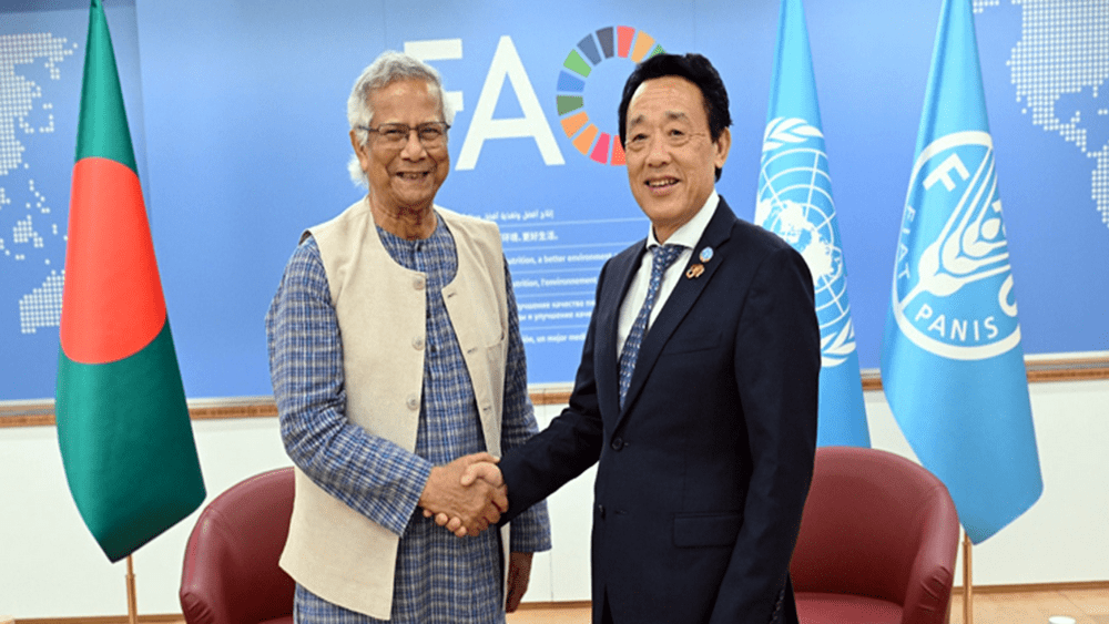 প্রধান উপদেষ্টা ইউনূস এফএওর দীর্ঘদিনের সহযোগিতার জন্য কৃতজ্ঞতা প্রকাশ করে তিনটি নতুন ক্ষেত্রে সহায়তা চান। গভীর সমুদ্রে মৎস্য আহরণ ও মাছ প্রক্রিয়াজাতকরণে সক্ষমতা বাড়ানো, ফল রপ্তানি সম্প্রসারণে সংরক্ষণ ও প্রক্রিয়াজাতকরণ উন্নয়ন এবং ফসল সংগ্রহোত্তর ব্যবস্থাপনা জোরদার করা, যার মধ্যে সাশ্রয়ী ও বহনযোগ্য হিমাগার স্থাপন অন্তর্ভুক্ত।