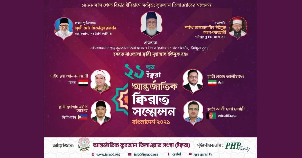 আন্তর্জাতিক কুরআন তিলাওয়াত সংস্থা (ইক্বরা)-এর উদ্যোগে, পিএইচপি ফ্যামিলির পৃষ্ঠপোষকতায় “২১তম ইক্বরা আন্তর্জাতিক ক্বিরাত সম্মেলন বাংলাদেশ-২০২১” অনুষ্ঠিত হবে।