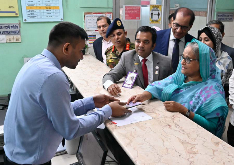 প্রধানমন্ত্রী রেজিস্ট্রেশনের জন্য নিজে হাসপাতালের কাউন্টারে গিয়ে রেজিস্ট্রেশন ও চেকআপ ফি পরিশোধ করেন।