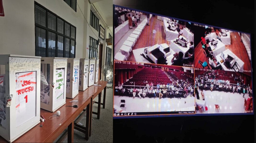 রাজশাহী বিশ্ববিদ্যালয় কেন্দ্রীয় ছাত্রসংসদ (রাকসু), হল সংসদ ও সিনেটে ছাত্র প্রতিনিধি নির্বাচনের ভোটগ্রহণ শেষে ডিজিটাল স্ক্রিনের মাধ্যমে সরাসরি দেখানো হচ্ছে ভোট গণনা।