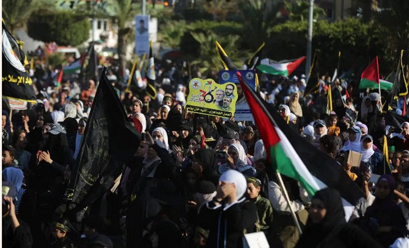 হামাসের সমর্থনে পশ্চিম তীরের বিভিন্ন এলাকা থেকে হাজার হাজার ফিলিস্তিনি জড়ো হয় এবং রামাল্লা শহর জুড়ে মিছিল বের করে।