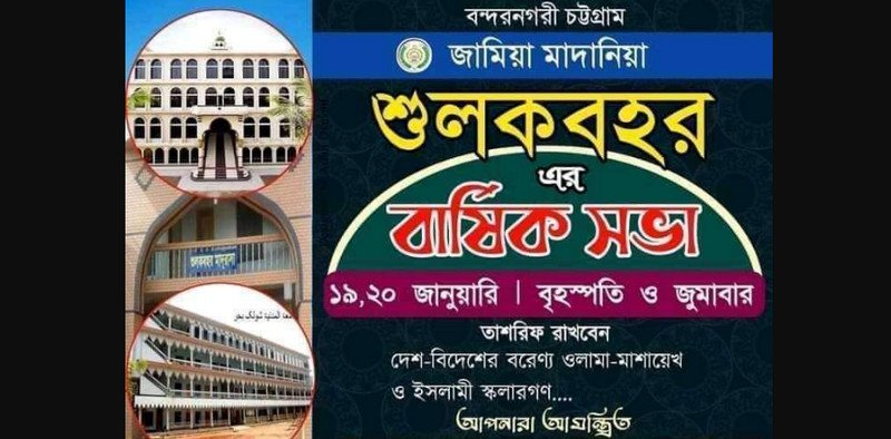 বন্দরনগরী চট্টগ্রামের ঐতিহ্যবাহী দীনিপ্রতিষ্ঠান ‘জামিয়া মাদানিয়া শুলকবহর মাদরাসা’র দুইদিন ব্যাপী বার্ষিক সভা শুরু হচ্ছে আজ থেকে।