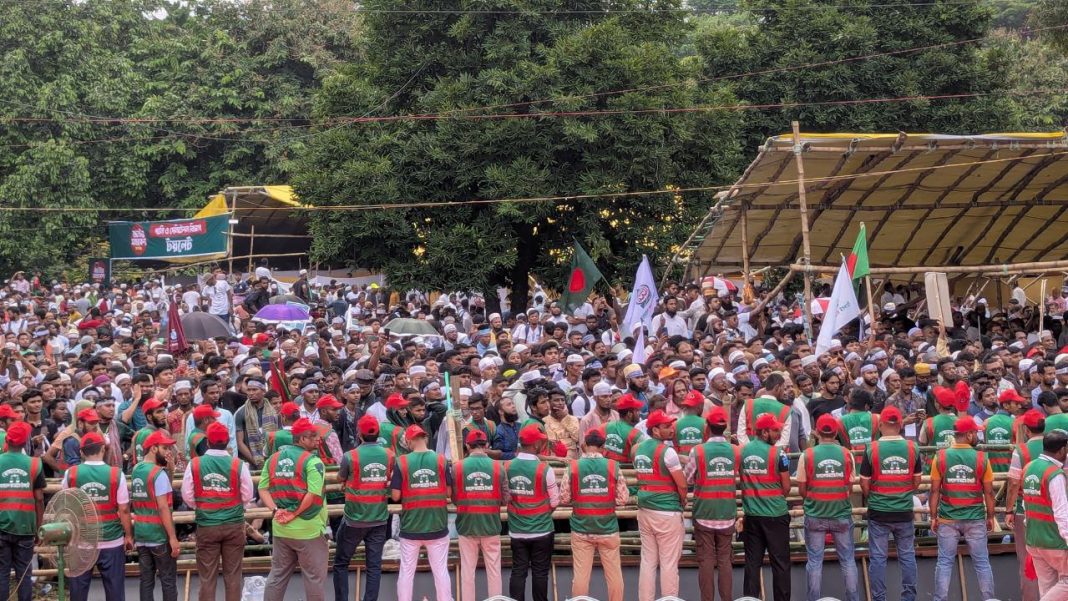 বাংলাদেশ জামায়াতে ইসলামী সাত দফা দাবি আদায়ের লক্ষ্যে রাজধানীর ঐতিহাসিক সোহরাওয়ার্দী উদ্যানে জাতীয় সমাবেশ সফল করতে দায়িত্ব পালন করছেন ২০ হাজারের মতো স্বেচ্ছাসেবক।