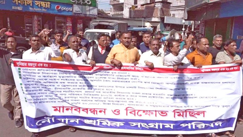 বিভাগীয় নৌযান শ্রমিক সংগ্রাম পরিষদের আয়োজনে বরিশাল নদী বন্দর থেকে একটি বিক্ষোভ মিছিল বের হয়, যা নগরীর বাঁধ রোড, চকবাজার, লাইন রোড, সদর রোড ও ফজলুল হক এভিনিউ হয়ে পুনরায় নদী বন্দরে গিয়ে শেষ হয়। পরে সেখানে মানববন্ধন ও সমাবেশ অনুষ্ঠিত হয়।