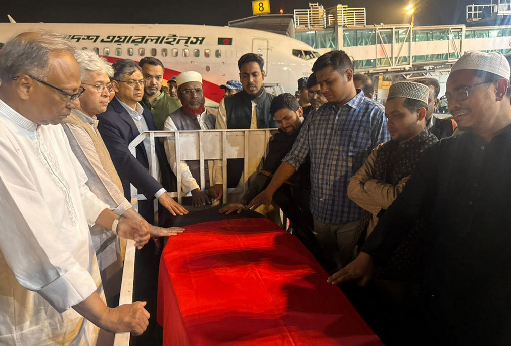 শুক্রবার সন্ধ্যা ৫টা ৪৮ মিনিটে শহীদ ওসমান হাদির কফিন বহনকারী বিমান বাংলাদেশ এয়ারলাইন্সের ফ্লাইট হযরত শাহজালাল আন্তর্জাতিক বিমানবন্দরে অবতরণ করে। এসময় বিএনপির স্থায়ী কমিটির সদস্য সালাহউদ্দিন আহমেদ, জামায়াতের মিয়া গোলাম পরওয়ার, আমার দেশ সম্পাদক মাহমুদুর রহমান, এনসিপি নেতা হাসনাত আবদুল্লাহ, যাকসু ভিপি সাদিক কায়েমসহ বিভিন্ন রাজনৈতিক দলের নেতারা কফিনের পাশে নীরবে দাঁড়িয়ে শ্রদ্ধা জানান। এরপর লাশ ফ্রিজার অ্যাম্বুলেন্সে করে হিমঘরে নেওয়া হয়।