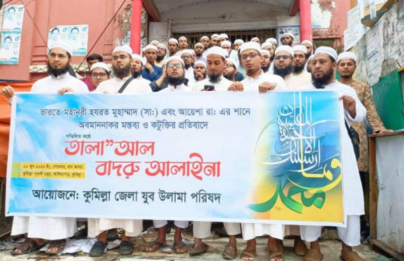 ভারতের ক্ষমতাসীন দল উগ্র হিন্দুত্ববাদী বিজেপির মুখপাত্র নূপুর শর্মা ও দিল্লি ইউনিটের প্রধান নাভিন জিন্দাল কর্তৃক হযরত মুহাম্মদ সাল্লাল্লাহু আলাইহি ওয়াসাল্লাম-কে কটূক্তির প্রতিবাদে এক ব্যতিক্রমী কর্মসূচি পালন করেছে কুমিল্লা জেলা যুব ওলামা পরিষদ৷