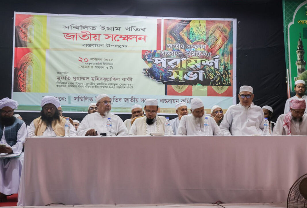 আজ সোমবার (২০ অক্টোবর) সকালে ইসলামিক ফাউন্ডেশন মিলনায়তনে সম্মিলিত ইমাম খতিব জাতীয় সম্মেলন-২০২৫ বাস্তবায়ন কমিটির পরামর্শ সভার পর এ সিদ্ধান্তের কথা জানানো হয়।