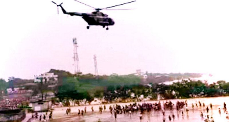 সুনামগঞ্জের তাহিরপুর উপজেলায় বন্যা দুর্গতদের জন্য হেলিকপ্টারে করে বিমান বাহিনীর দেওয়া ত্রাণ সামগ্রী নিতে গিয়ে ধাক্কাধাক্কিতে আহত ছয়জনের মধ্যে বিপ্লব মিয়া (৪৫) নামে একজনের মৃত্যু মৃত্যু হয়েছে।
