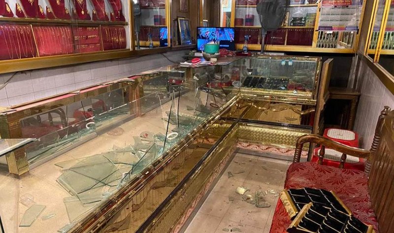 আহত দোকান মালিক অধীর কর্মকার জানান, তিনি ও তার ভাইকে মাথায় পিস্তল ঠেকিয়ে জিম্মি করে প্রায় ৫০ ভরি স্বর্ণ লুট করে নিয়ে গেছে ডাকাতদল। এসময় হাতাহাতির এক পর্যায়ে তার পায়ে গুলি ও মাথায় আঘাত করে তারা।