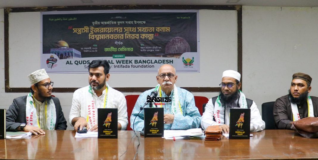 আন্তর্জাতিক কুদস সপ্তাহ উপলক্ষে ইহুদিবাদী সন্ত্রাসীদের অবৈধ রাষ্ট্র ইসরাইলের সাথে সখ্যতা বনাম বিশ্ব মানবতার নিরব কান্না শিরোনামে সেমিনার অনুষ্ঠিত হয়েছে।