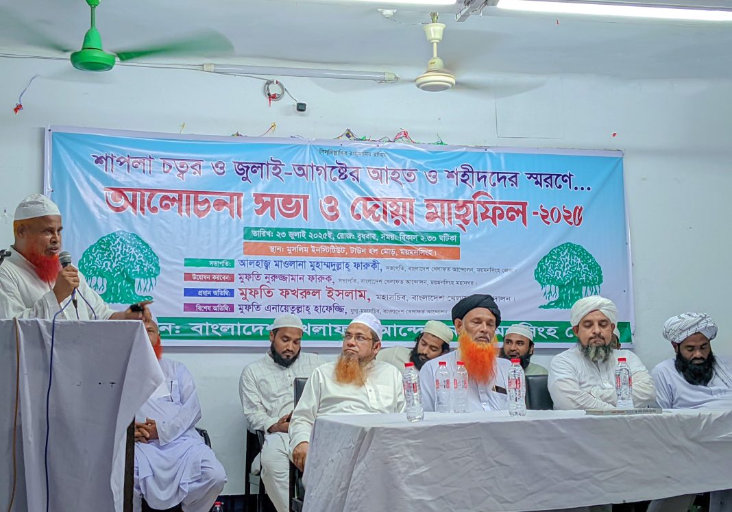 দলের ময়মনসিংহ জেলা সভাপতি মাওলানা মুহাম্মাদুল্লাহ ফারুকির সভাপতিত্বে এতে প্রধান অতিথি ছিলেন, খেলাফত আন্দোলন (একাংশ)-এর মহাসচিব মুফতী ফখরুল ইসলাম।