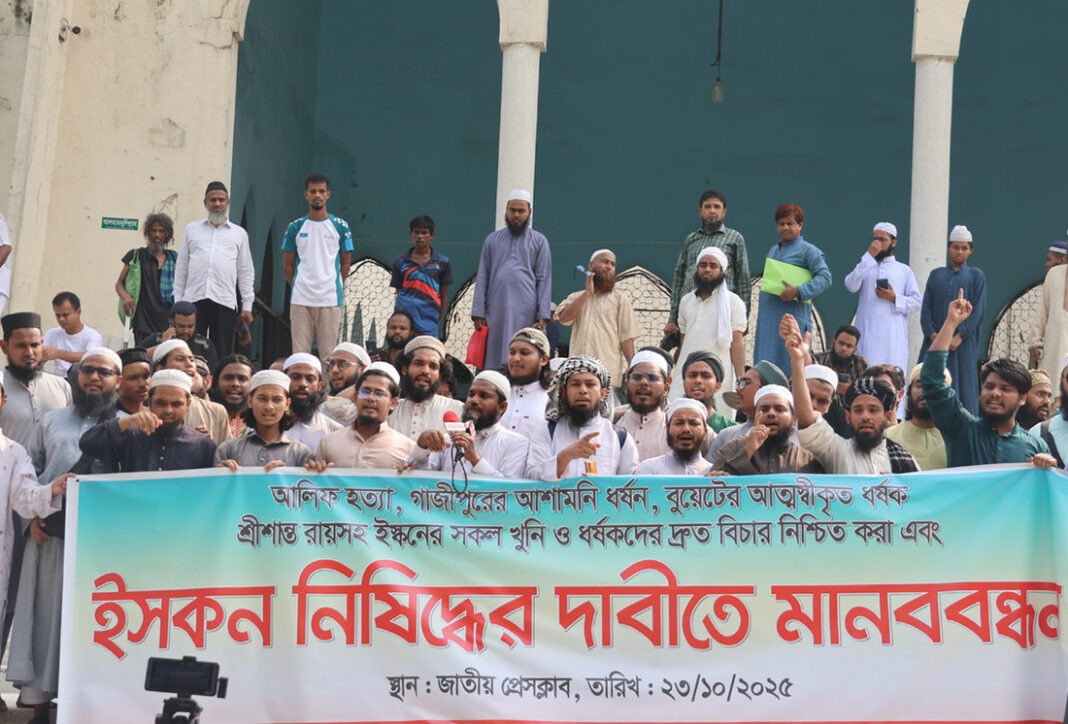 বক্তারা ইস্কনকে একটি ‘উগ্র হিন্দুত্ববাদী ও সন্ত্রাসী সংগঠন’ উল্লেখ করে সংগঠনটিকে দ্রুত নিষিদ্ধের দাবি জানান।