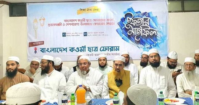 শনিবার বাংলাদেশ কওমি ছাত্র ফোরাম আয়োজিত ইফতার মাহফিলে অংশ নিয়ে দেশের বরেণ্য আলেমরা এসব কথা বলেন। রাজধানীর পল্টনের হোটেল রয়েল প্যালেসে মাহফিলটি অনুষ্ঠিত হয়। এতে সংগঠনের সদস্য, শুভাকাঙ্ক্ষী ও দেশবরেণ্য ওলামায়ে কেরাম উপস্থিত ছিলেন।