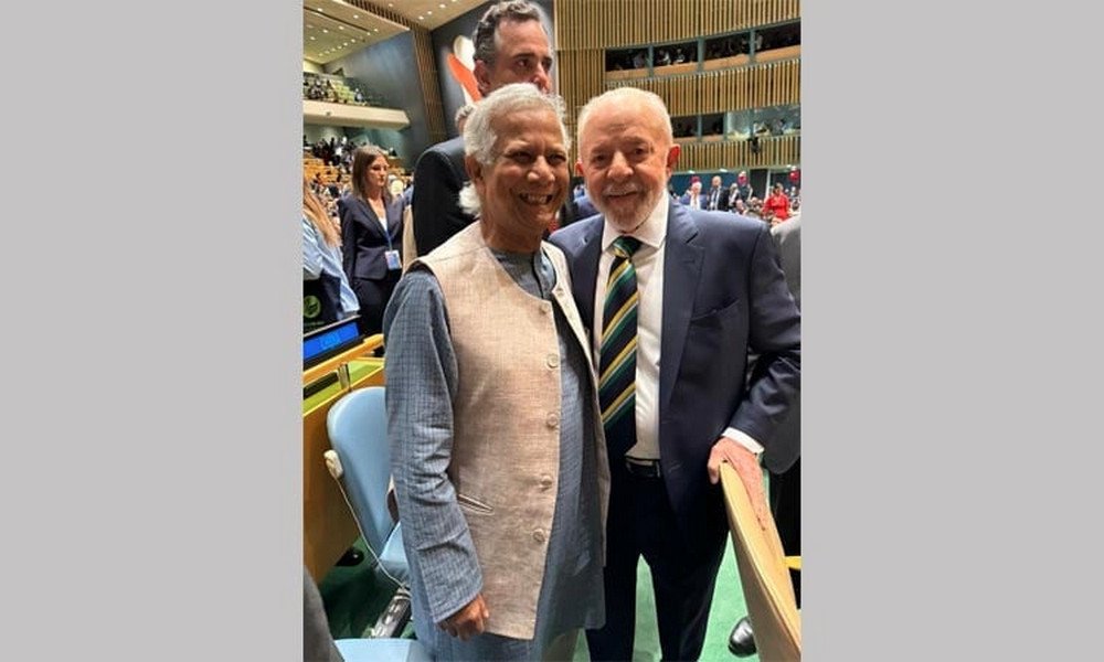 সংবর্ধনা অনুষ্ঠানে অধ্যাপক ইউনুস, ব্রাজিলের প্রেসিডেন্ট লুইজ ইনাসিও লুলা দা সিলভা, মরিশাসের প্রেসিডেন্ট পৃথ্বিরাজ সিং রূপন এবং জাতিসংঘ মানবাধিকার সম্পর্কিত হাই কমিশনার ভলকার টুর্ক প্রমুখ।