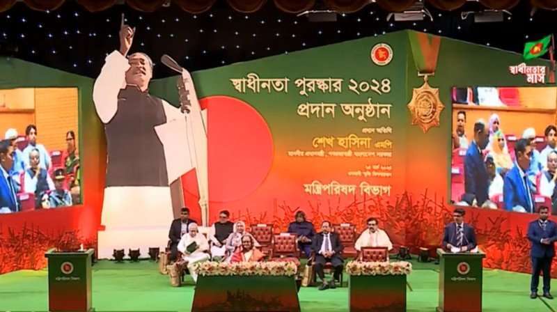সোমবার (২৫ মার্চ) সকালে রাজধানীর ওসমানী স্মৃতি মিলনায়তনে “স্বাধীনতা পুরস্কার-২০২৪” অনুষ্ঠানে পুরস্কার বিতরণ করা হয়।