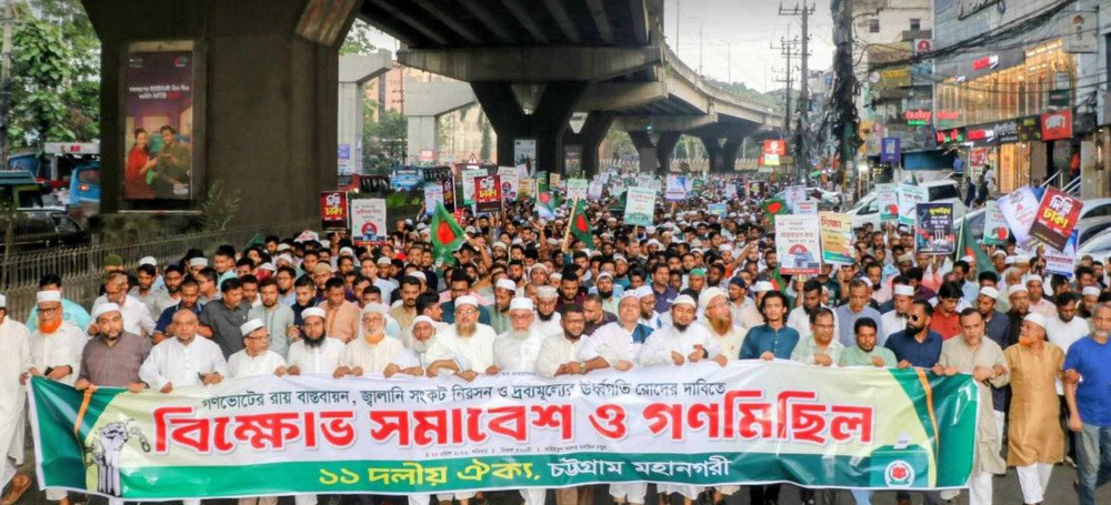 গণভোটের রায় বাস্তবায়নের দাবিতে চট্টগ্রামে ১১ দলীয় ঐক্যের উদ্যােগে গণমিছিল ও সমাবেশে অনুষ্ঠিত হয়েছে।