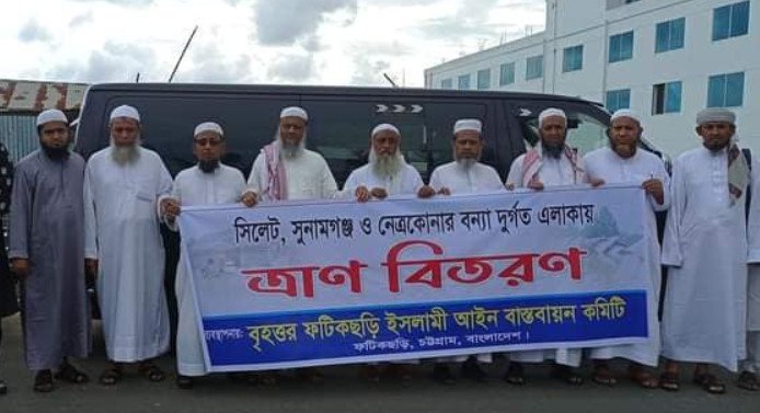 সিলেট, নেত্রকোনা ও সুনামগঞ্জে বন্যার্তদের মাঝে ১৫০০০০০ পনের লক্ষ টাকার ত্রাণ সহায়তা দিচ্ছে ফটিকছড়ি ইসলামী আইন বাস্তবায়ন কমিটি। সংগঠনের উপদেষ্টা আল্লামা শাহ মুহিববুল্লাহ বাবুনগরীর নির্দেশনায় এই ত্রাণ তৎপরতা চালানো হচ্ছে।
