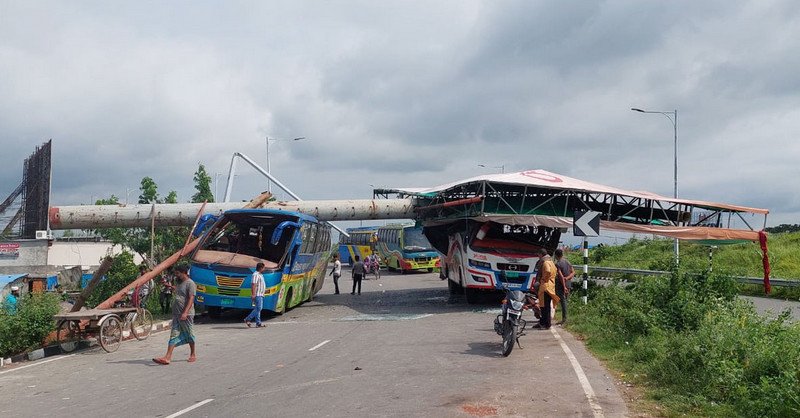 ঘূর্ণিঝড় সিত্রাং: ফরিদপুরের ভাঙ্গায় দুই বাসের ওপর ভেঙে পড়ল বিশাল আকৃতির বিলবোর্ড