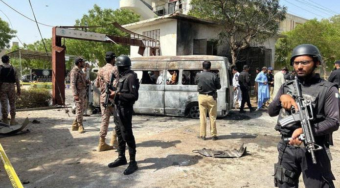পাকিস্তানের করাচি বিশ্ববিদ্যালয়ের অভ্যন্তরে একটি চাইনিজ ভ্যানের ভেতরে আত্মঘাতীর হামলায় তিন চীনাসহ চারজন নিহত এবং তিনজন আহত হয়েছেন। আত্মঘাতী হামলাকারী একজন নারী ছিলেন বলে জানা গেছে।