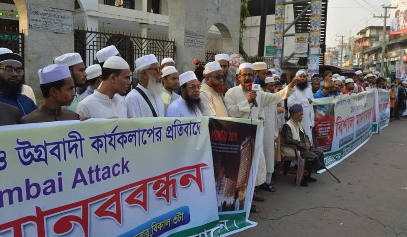 বক্তারা বলেন, ২৬/১১ মুম্বাই এর জন্য মানবতাবিরোধী একটি কালো দিবস’ হিসেবে যেমনি আন্তর্জাতিকভাবে স্বীকৃত তেমনি বাংলাদেশের ৬৪ জেলায় একযোগে বোমা হামলা, ঢাকা গুলশানে হামলা সহ নানা ঘটনা এখনো আমাদের কাঁদায়, সিরিয়া, পাকিস্তান, ইরাক ও ইরান সহ পৃথিবীর নানা দেশে সন্ত্রাসীদের হামলায় কত নিরীহ নারী-পুরুষ-শিশুদের প্রাণ কেড়ে নিয়েছে। বিভিন্ন দেশে ধর্মীয় উপাসনালয়ে হামলার ঘটনায় বিশ্ব বিবেক আজ বাকরুদ্ধ।
