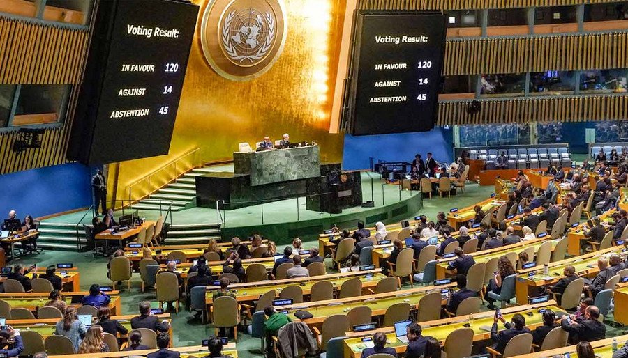 জর্ডান প্রস্তাবটি পেশ করার পর সেটির ওপর ভোটগ্রহণ হয়। এই পর্ব শেষ হওয়ার পর দেখা যায়, জাতিসংঘের ১২০টি সদস্যরাষ্ট্র প্রস্তাবটির পক্ষে ভোট দিয়েছে, বিপক্ষে ভোট দিয়েছে যুক্তরাষ্ট্রসহ ১৪টি সদস্যরাষ্ট্র এবং ভোটদান থেকে বিরত থেকে বিরত থেকেছে ভারতসহ ৪৫ সদস্যরাষ্ট্র।